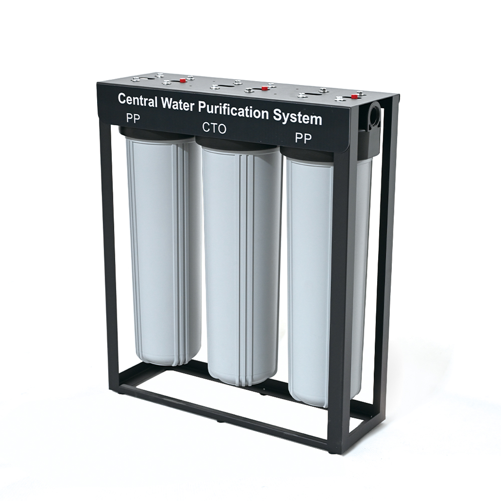 Advanced 3-stage water filtration effectively treats raw water by removing sediment, suspended solids, residual pesticides, residual chlorine, unpleasant color, odor, colloids and other impurities.Australian Watermark certified, it is widely suitable for commercial applications (beverage stores, coffee shops, hotels) and household whole-house water purification.